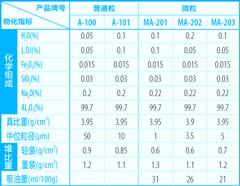 该产品外观呈白色细沙状或粉状,粒度均匀,易于分散,具有良好的烧结性能,本产品是生产耐热耐腐蚀产品的基本原料,如高铝耐火材料,陶瓷制品,汽车用的火花塞,电子陶瓷件,钢铁炉料,高温摩擦材料以及抛光研磨制品中的原料。