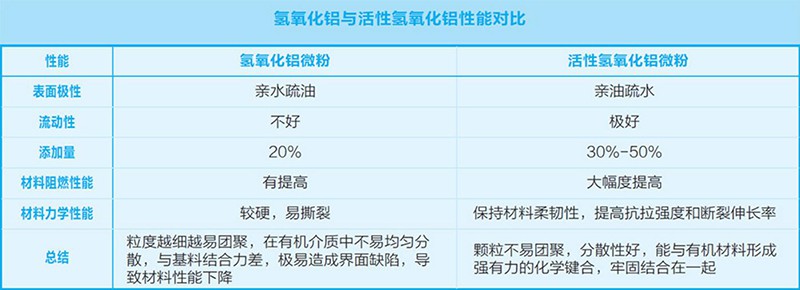 活性氢氧化铝是采用硅烷类或钛酸酯类偶联剂对氢氧化铝进行表面处理,产品细度高,粒度分布窄,阻燃效果好,白度高、容重低,在常温下稳定,活性氢氧化铝可改善氢氧化铝与树脂的结合性和加工性,使之兼具阻燃和填充双重功能,赋予制品优良的综合性能,因而在塑料、橡胶等复合材料中添加该产品,不仅使产品具有阻燃、消烟、自熄效果,而且抗漏电、耐电弧、耐磨性能增强??晒惴河τ糜诘绻DPE电缆料、橡胶、电线、电缆绝缘层、护套层、保温材料、传送带等。